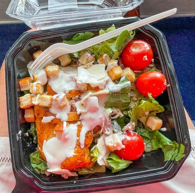 Det blev en lugn men gråmulen resa och för att slippa köa i restaurangen hade vi bokat vilstolar (varannan bokades i covidtider) och lunchen bestod av medhavda sallader.