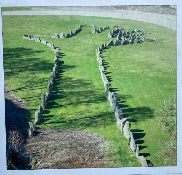 Nästa morgon vaknar vi till uppehållsväder, men vindarna var fortfarande 12-17 m/s, så promenader över kala klippor gick bort ur planeringen. Istället satte vi oss i bilar och åkte upp till Hunnebostrand för att titta på årets utställning av stenskulpturer nere i hamnen. Sedan 2011 har det före detta stenbrottet i Hunnebostrand använts som utställningsplats och det året besökte vi utställningen (vår första gemensamma sommar) och nog var vi liiite yngre....