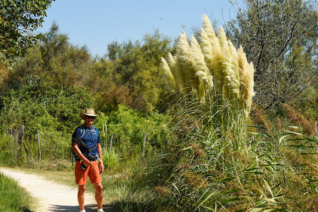 När vi försett oss med lunch plockade vi ner våra cyklar och trampade iväg till Parc Ornithologique du Pont de Gau, drygt fem km från campingen. Vägen dit hade breda vägrenar, markerade som cykelbana så det gick snabbt att trampa dit.
